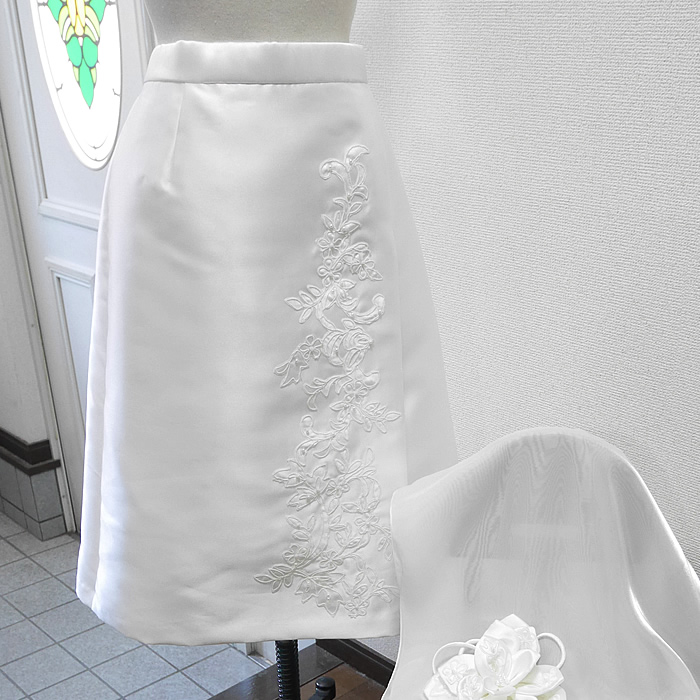 ウェディングドレスからスカートとショール、コサージュにリメイクしました。