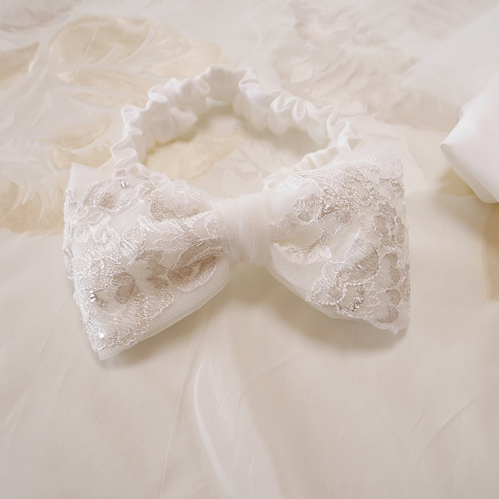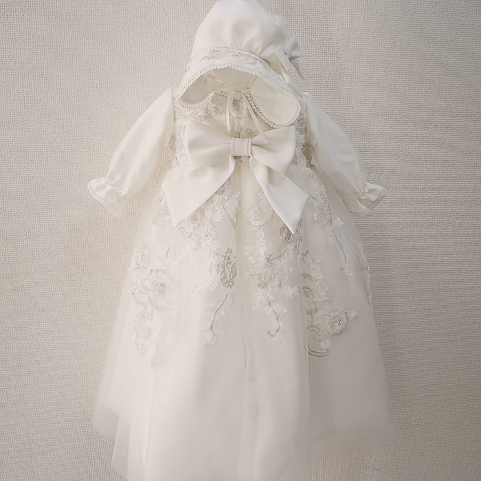 ウェディングドレスからベビードレスとヘッドリボンにリメイクしました。