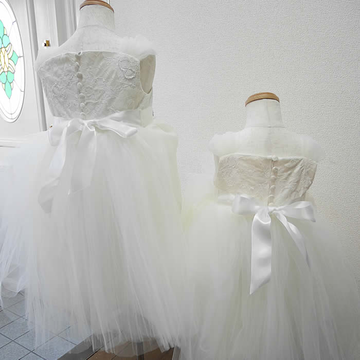 ウェディングドレスからサイズ違いの姉妹のドレスをお作りしました。
