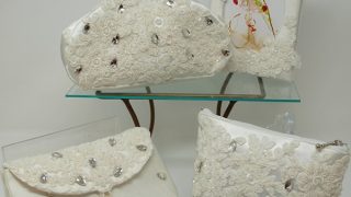 ウェディングドレスからたくさんのポーチやバッグにリメイクしました。