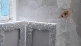 ボリューミィなドレスからたくさんのベビー用品と小物に生まれ変わりました。