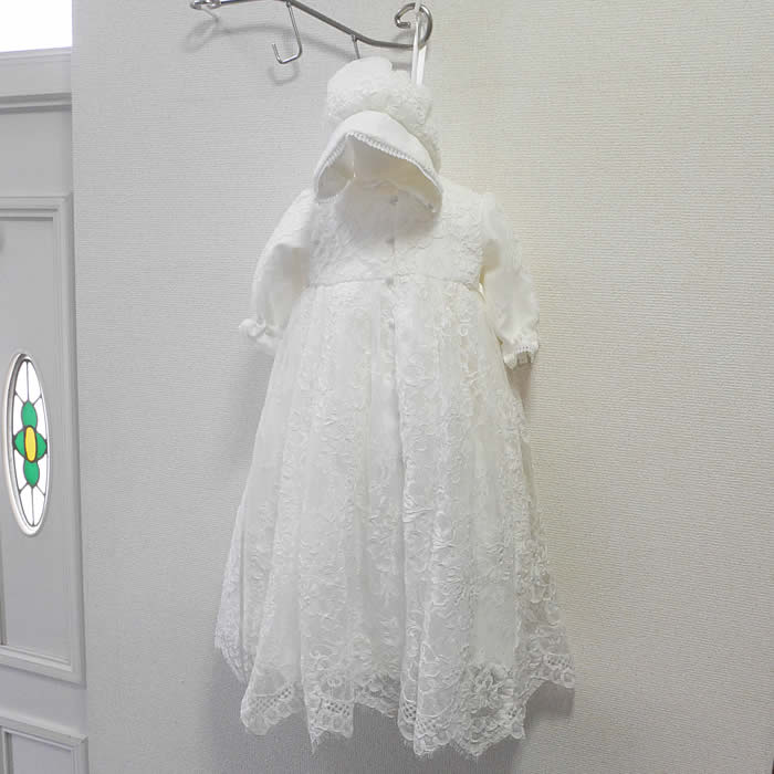 総レースのベビードレスは上品でエレガントなセレモニードレスですが、