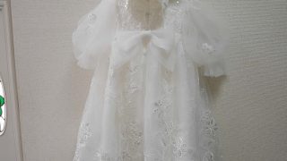 元ドレスのレース部分が多いことでお宮参り用のケープもお作りしました。
