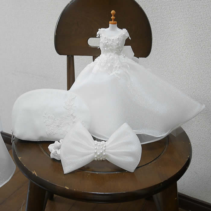 ウェディングドレスから姉妹のキッズドレスとミニチュアドレス、ポーチをお作りしました。