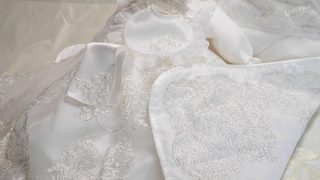 ウェディングドレスから姉妹のキッズドレスとミニチュアドレス、ポーチをお作りしました。