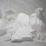 元ドレスのようにスパンコール刺しゅうのチュール地にオーガンジーを重ねた