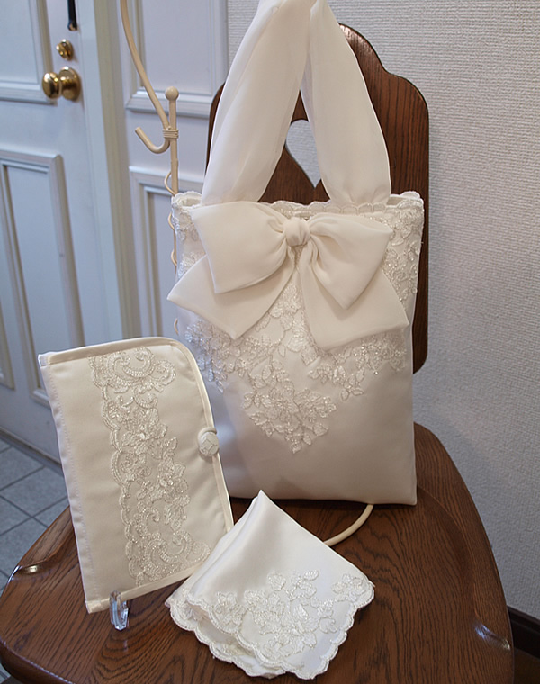 シフォン使いのドレスのニュアンスを持ち手とリボンに残したデザインです。