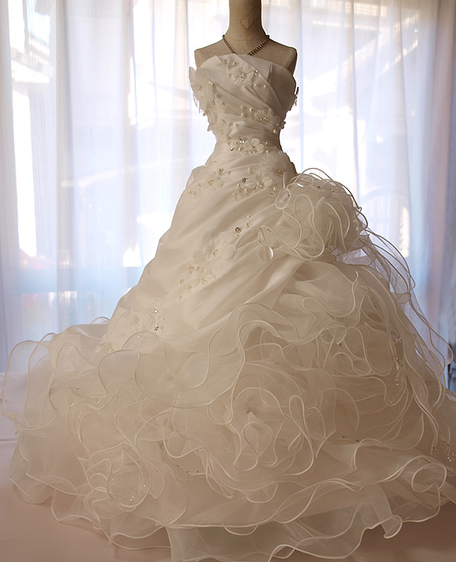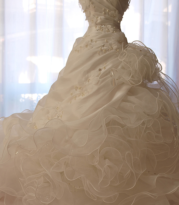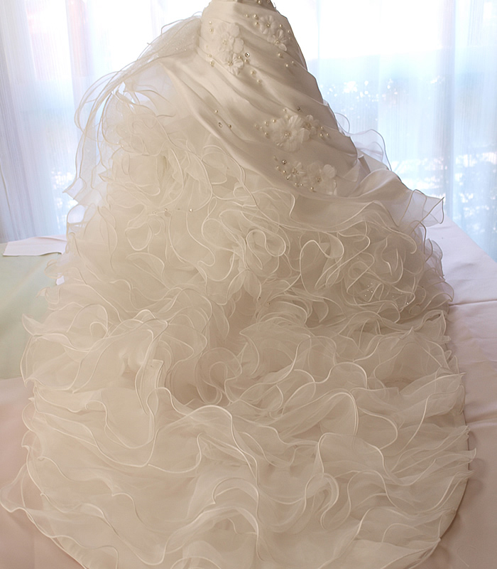 インテリアウェディングドレスからドール用のドレスにリメイクしました。