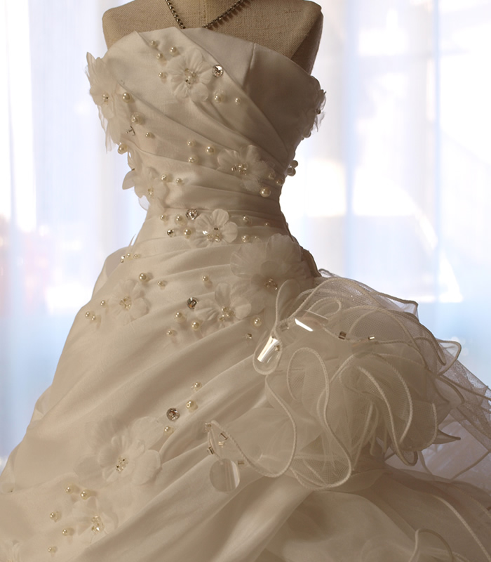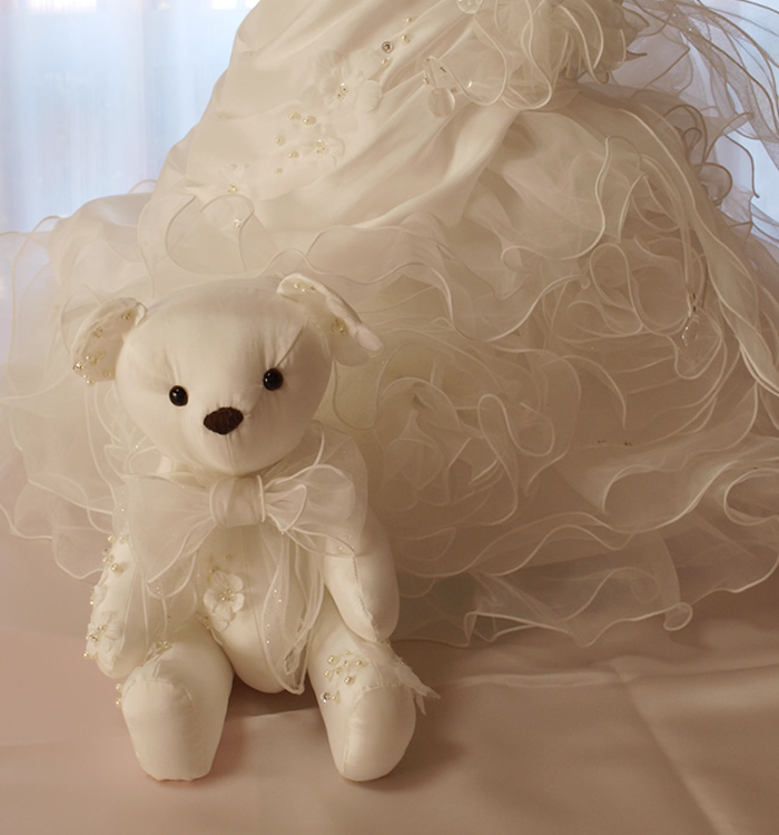 ウェディングドレスからドール用のドレスにリメイクしました。
