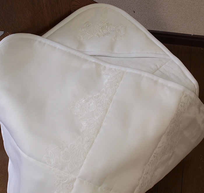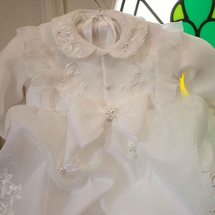 ウェディングドレスの雰囲気を活かしたベビードレスをお作りしました。