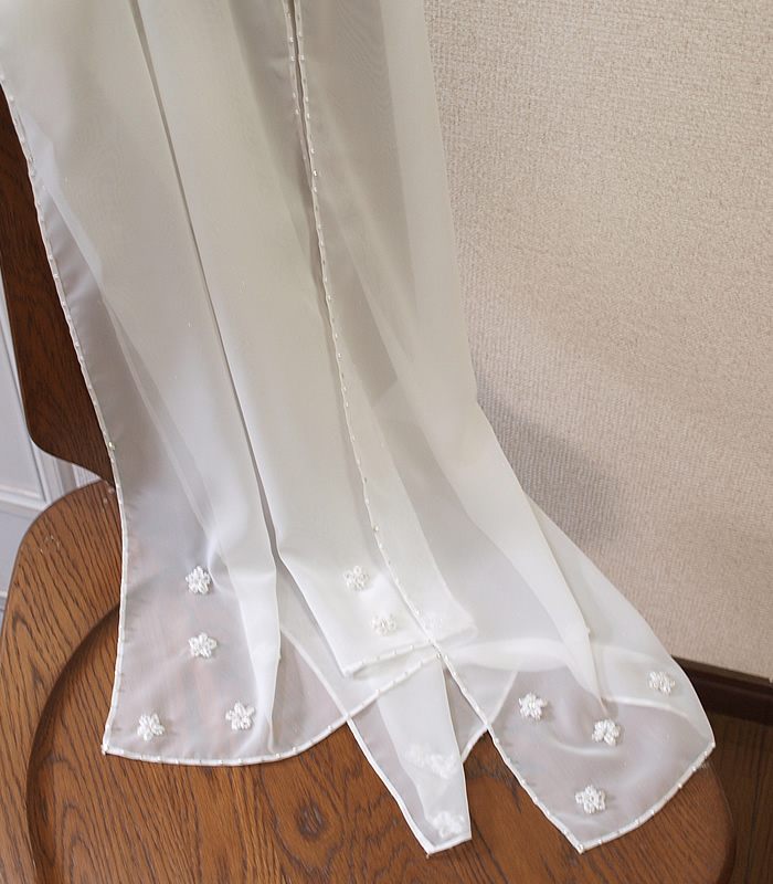 お母様用のショールを柔らかいシフォン生地でお作りしました。