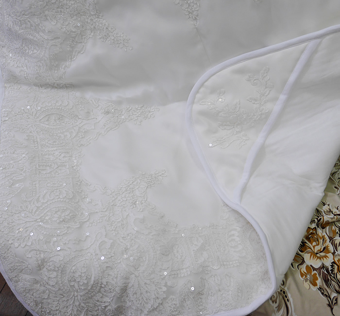 ウェディングドレスをベビードレスとおくるみにリメイクしました。