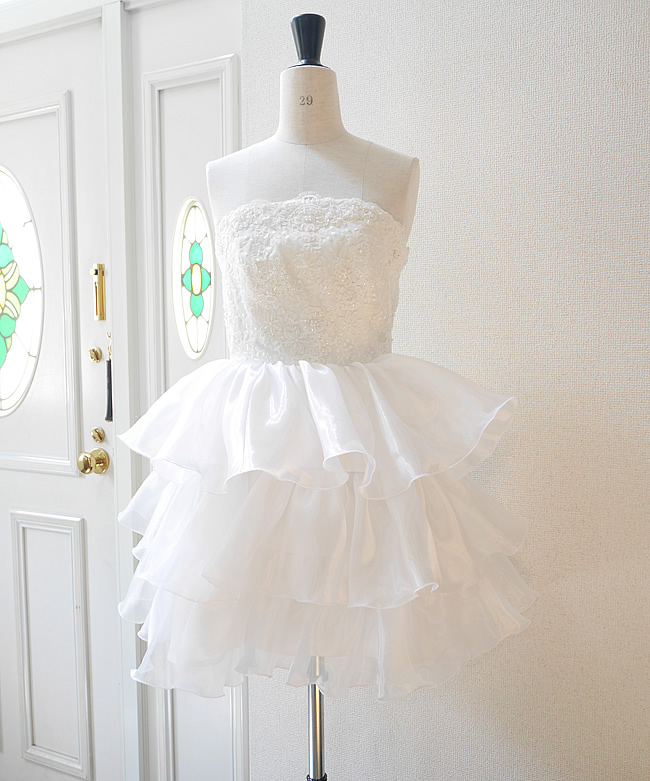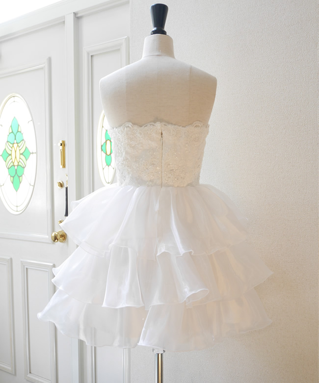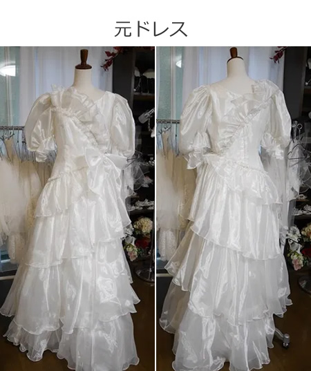 元ドレスのオーガンジーのフリルをティアードスカートにアレンジしたふわふわキュートなデザイン。