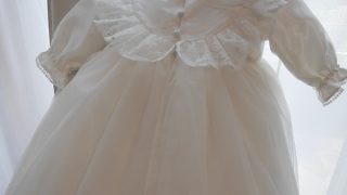 元ドレスのラメレースを丁寧に取り外して付けました。