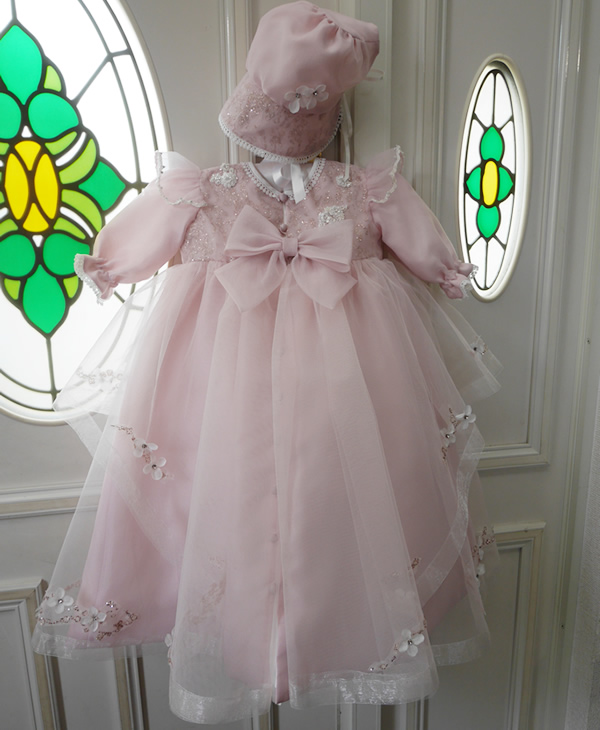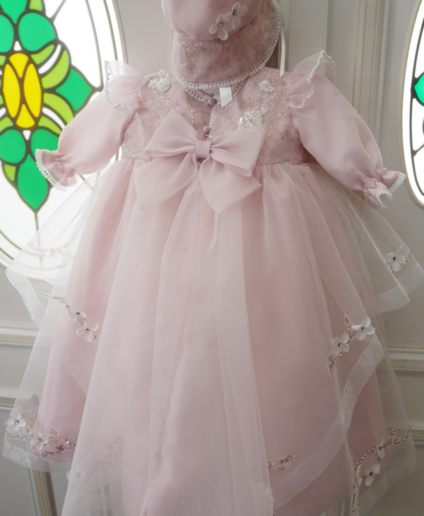 ベビー・子供・出産準備品ベビーピンクなカラードレスをセレモニードレスにリメイクしました。