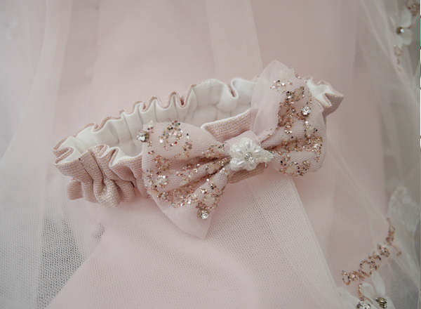 ベビーピンクなカラードレスをセレモニードレスにリメイクしました。