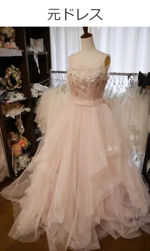 スカート部分は元ドレスの雰囲気のまま華やかなシルエットに。