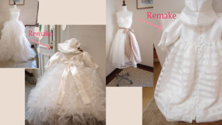 ふんわりチュールのベビーピンクドレス ベビー・子供・出産準備品 2025.09.28 ベビーピンクなカラードレスをセレモニードレスにリメイクしました。 スカート部分は元ドレスの雰囲気のまま華やかなシルエットに。ヨークの身頃と帽子には元ドレスのラメレースを丁寧に取り外して付けました。 とても可愛いベビードレスです! ヘッドリボンもキラキララメレースをあしらっています。 リメイクのお問合せはこちらから 次へ 前へ