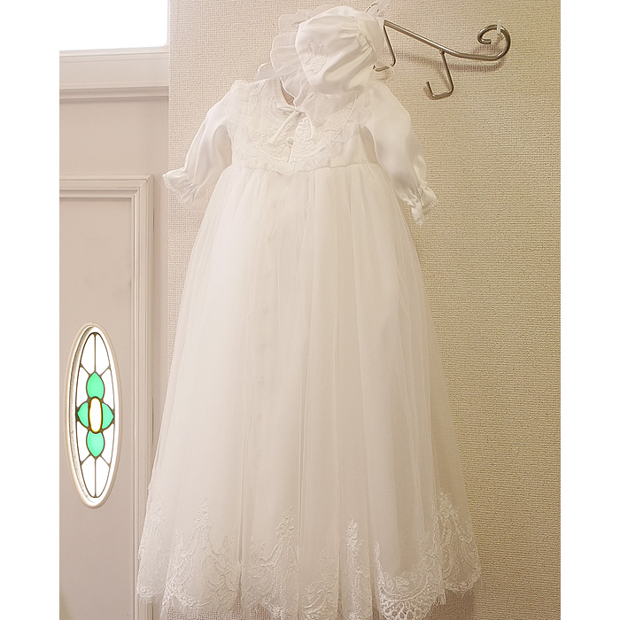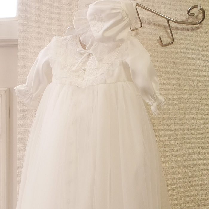 通常のベビードレスより、スカート丈が長めのドレスです。