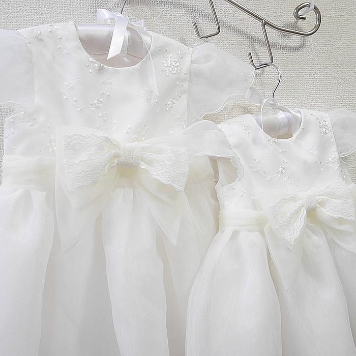 ベビー・子供・出産準備品ウェディングドレスを姉妹用のキッズドレスにリメイクしました。