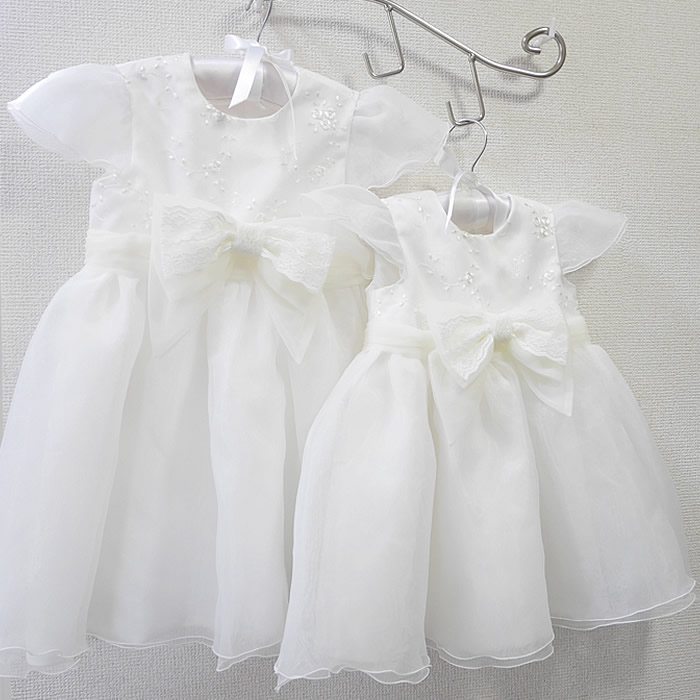 ベビー・子供・出産準備品ウェディングドレスを姉妹用のキッズドレスにリメイクしました。