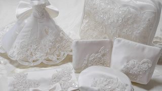 元ドレスと同じようにリバーレースをあしらったドレスは上品ですね。