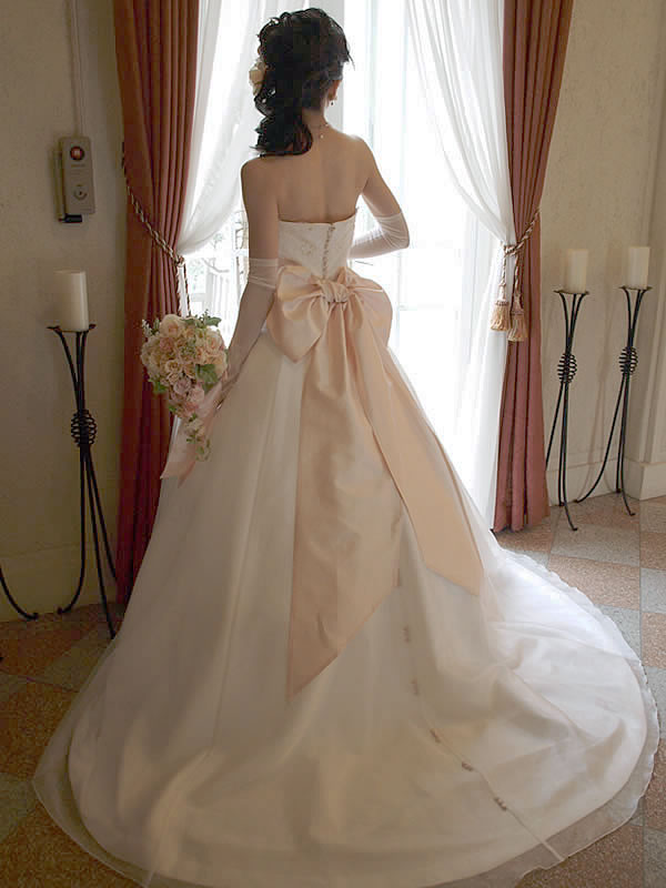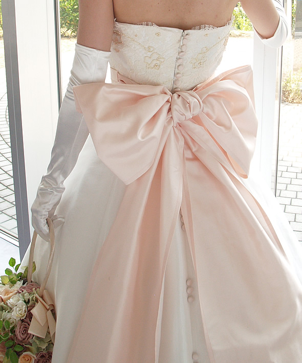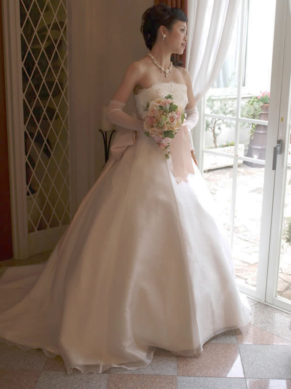 ブライダルサテン・リバーレース オーガンジー・シルクシャンタン、他※ウエストシルクリボン付き