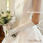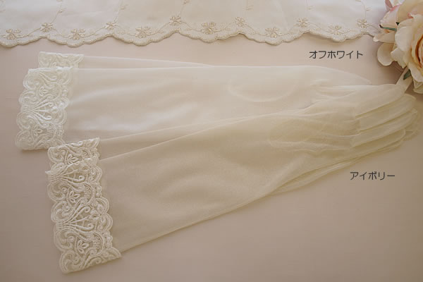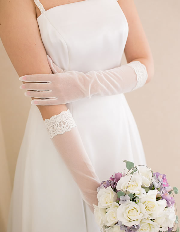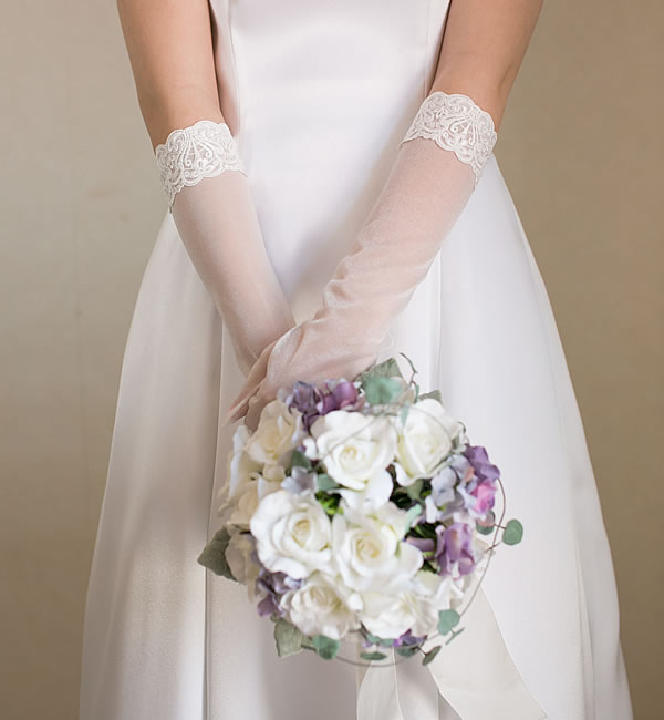オーガンジーグローブの袖口にクラシカルなレースをほどこしました。