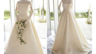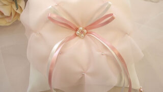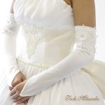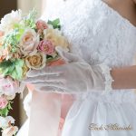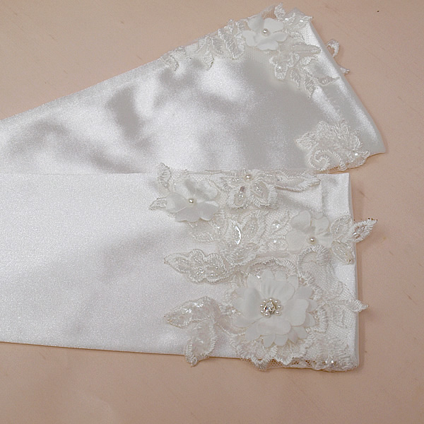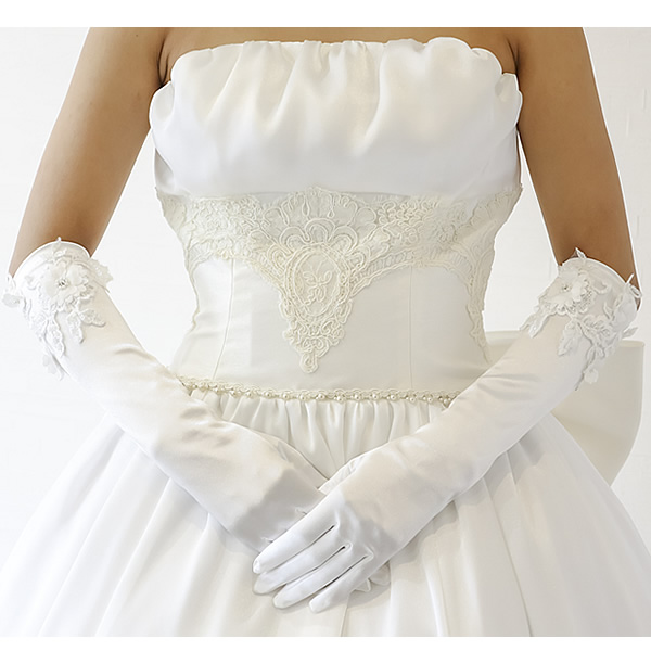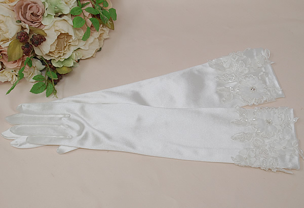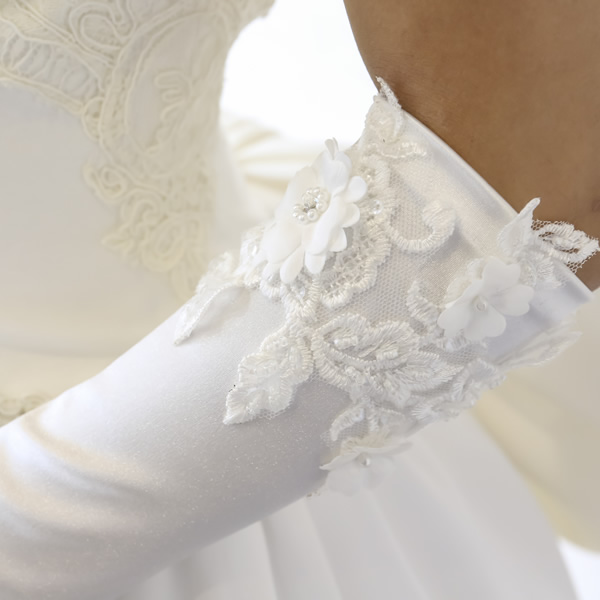 袖口に立体的なお花のモチーフをあしらった華やかなサテングローブ。