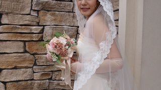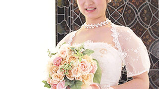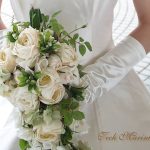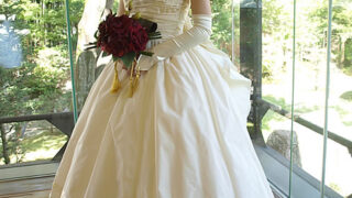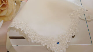 袖口に立体的なお花のモチーフをあしらった華やかなサテングローブ。