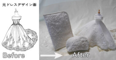 ベビードレスやミニチュアドレス、フレームドレスなど、アイテム別のリメイク実例もぜひご覧ください。