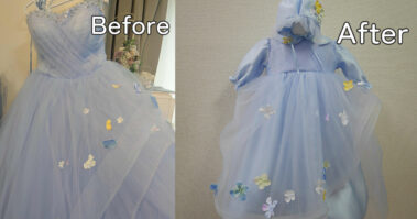 42年にわたり衣装デザインに携わってきた経験を活かし、一着一着のドレスの素材や装飾に合わせて最適な方法をご提案しています。繊細なレースやチュールも無駄にせず、できる限り美しく活かすことを大切にしています。