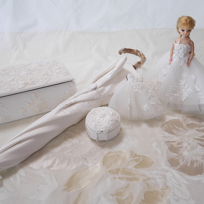 インテリア キラキラレースのアクセサリーボックスとリカちゃんドレス