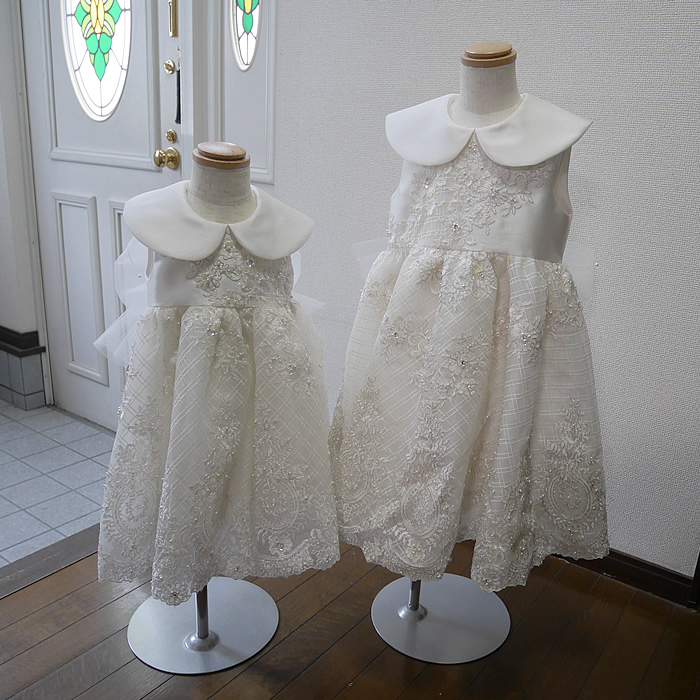 インテリア カットワークレースのベビードレスと1/6ミニチュアドレス