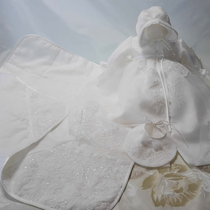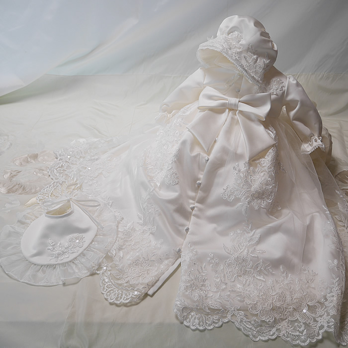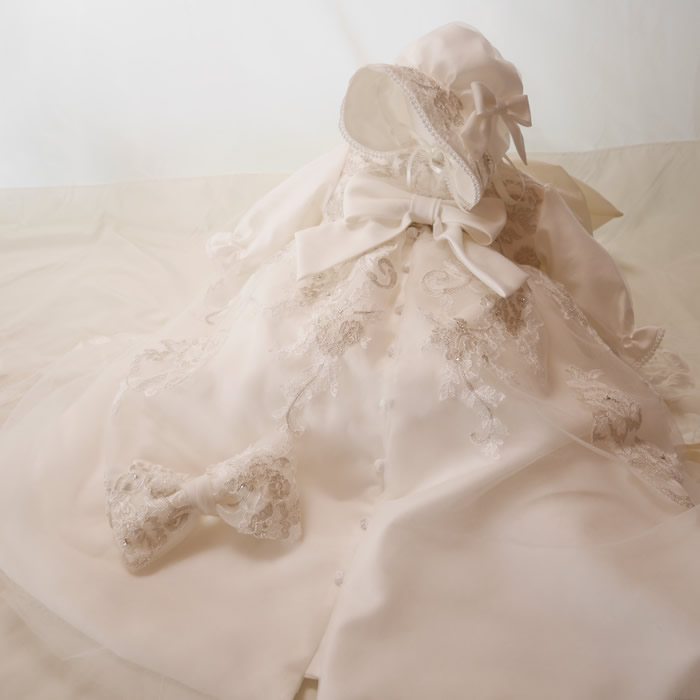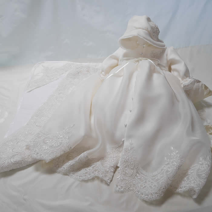 ベビー・子供・出産準備品 豪華レースのベビードレスとおくるみ
