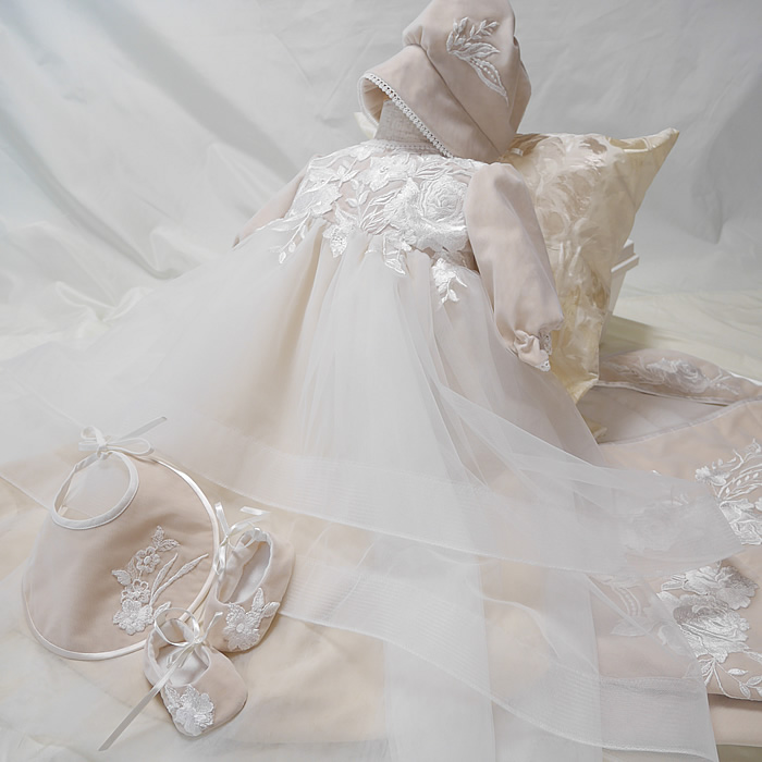 ベビー・子供・出産準備品 カットワークレースのベビードレスとおくるみ