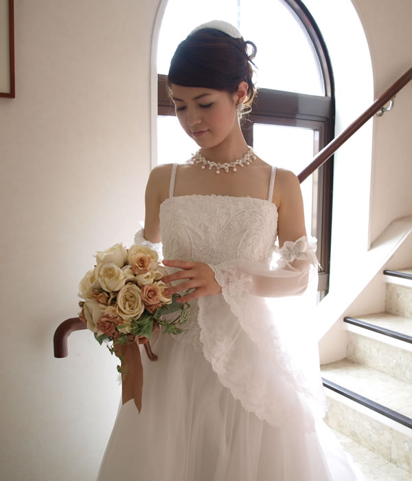ウェディングドレスにワンポイント、花嫁様のブライダルショール。