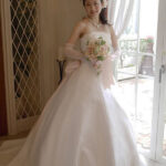 胸元にはリバーレースを配置し、さらに豪華なビーズ刺繍を施しました。