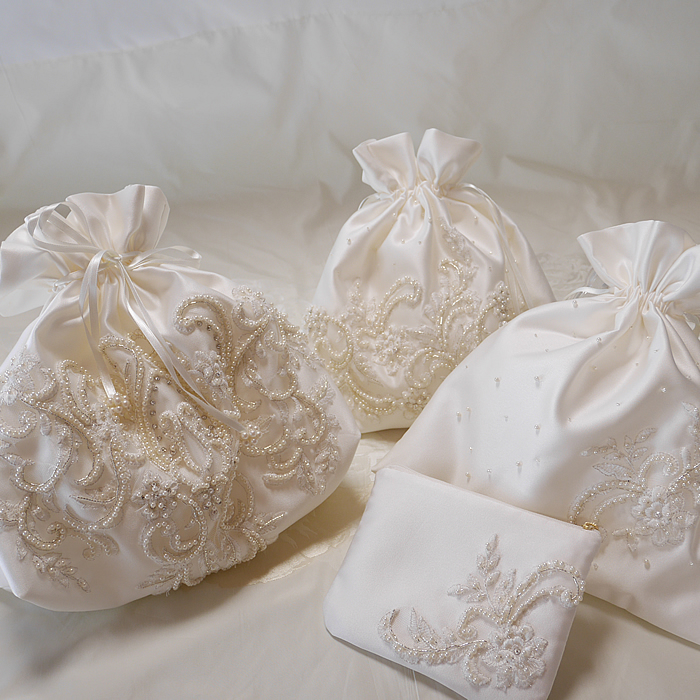 ドレスの装飾を豪華に飾ったり、さりげなくワンポイントにあしらったり、使い方に応じて色々なデザインをご提案させて頂きます。