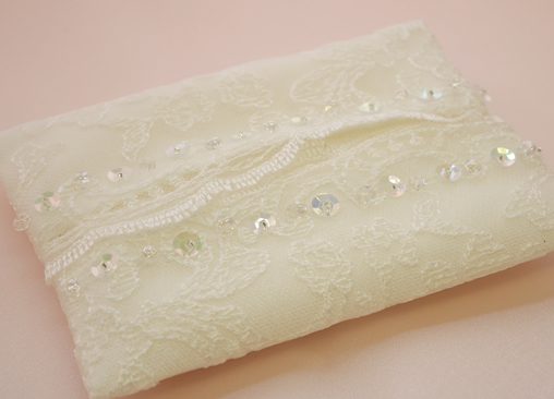 /A: ウェディングドレスには繊細なレースや綺麗なビーズがついている事が多いですよね。