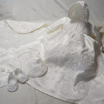 土台の生地はドレスのサテン生地で、装飾はベールのレースをふんだんに使い華やかに仕上げたこだわりのリメイク品です。