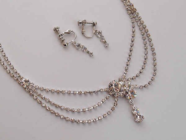 3連の繊細なラインストーンがエレガントなネックレス&イヤリング。