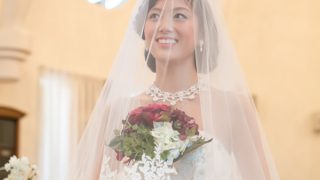 小ぶりでアレンジしやすくドレス姿が凛と引き締まるボンネです。
