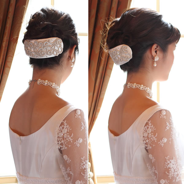 髪型やお好みのイメージに合わせてヘッドトップやバックに着けて頂きます。
