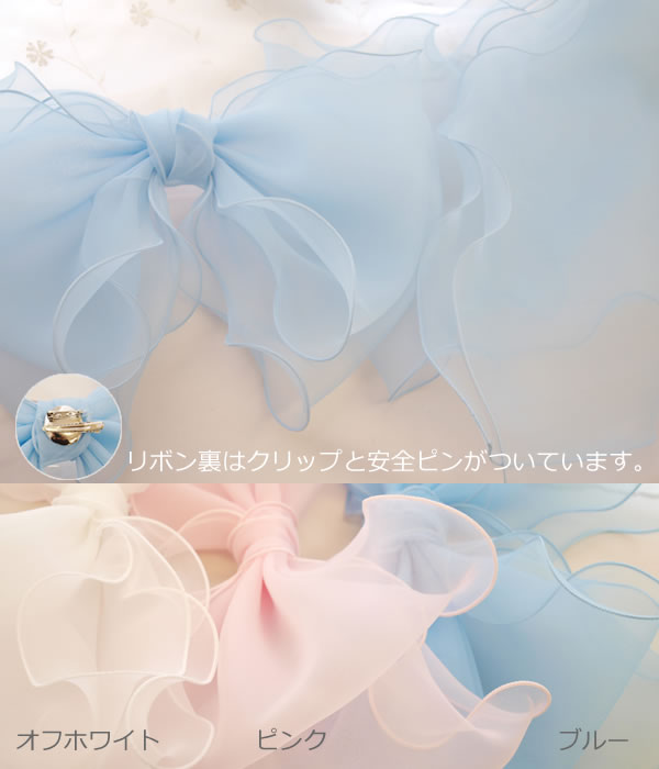 オーガンジー(ポリエステル) リボン裏にクリップとピンが付いています