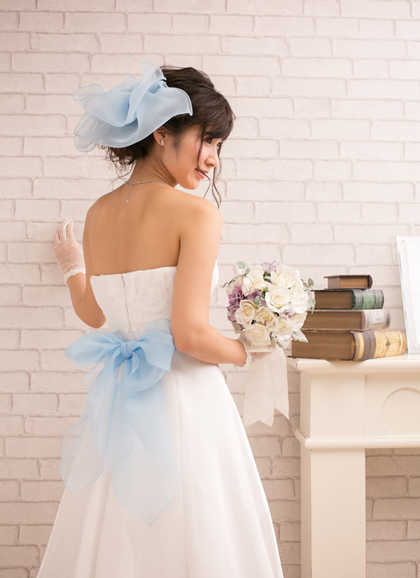 サッシュベルト&ヘッドドレス【エアリーリボン ブルー】