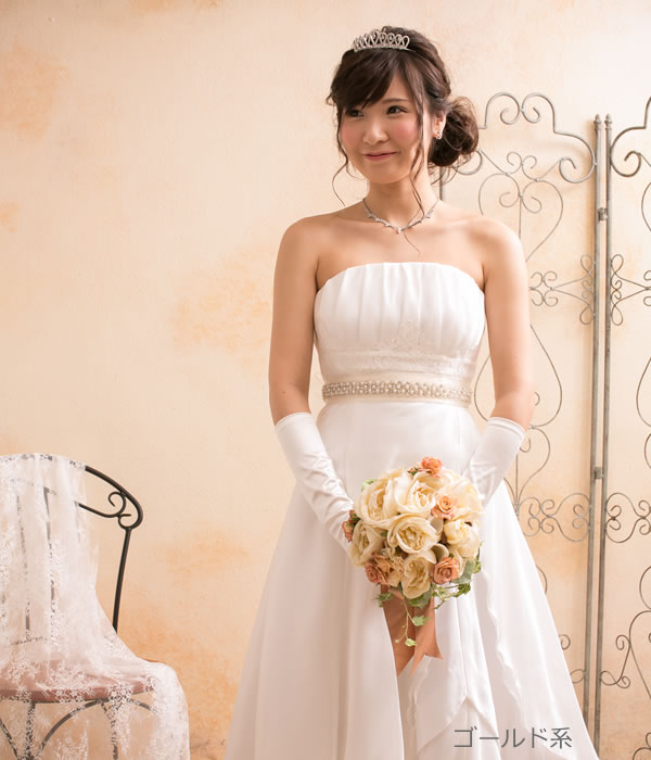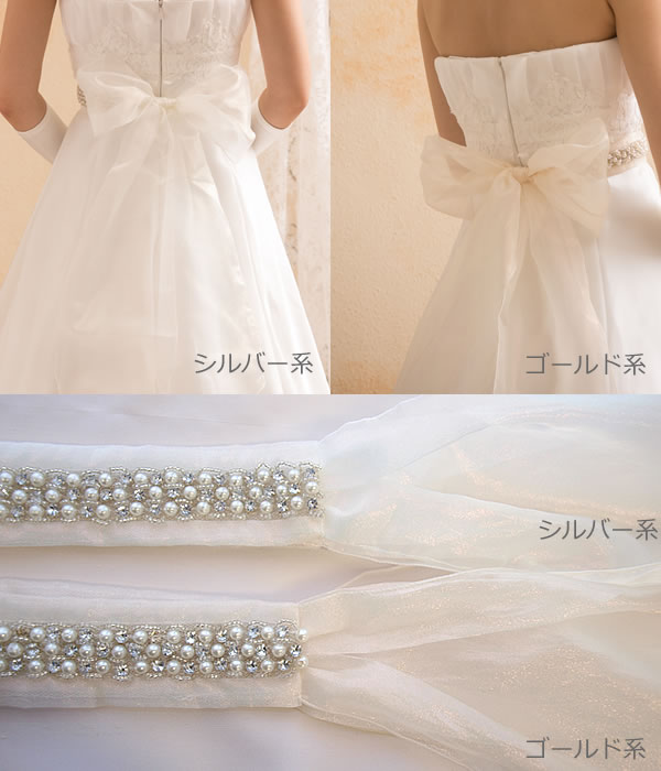 ベルト本体のオーガンジー色味は「シルバー系」と「ゴールド系」がございます。お好みのイメージに合わせてお選び下さい。