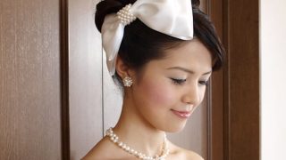 風呂敷のように包み込むデザインがとても愛らしく、リング位置にはピンクの小梅を飾りました。
