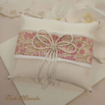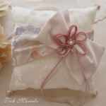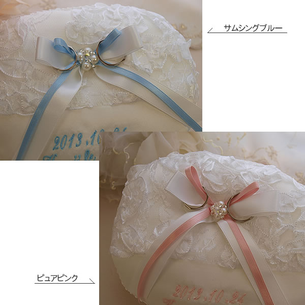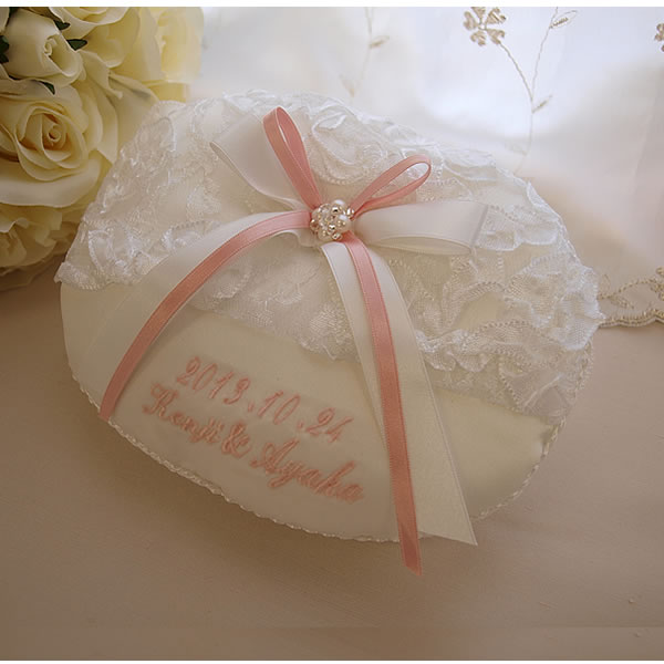 リボン刺しゅうを施したレースがロマンティックなリングピロー。