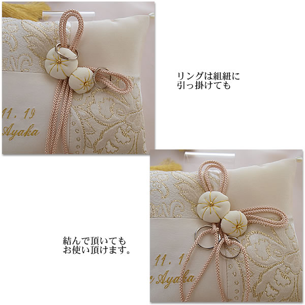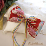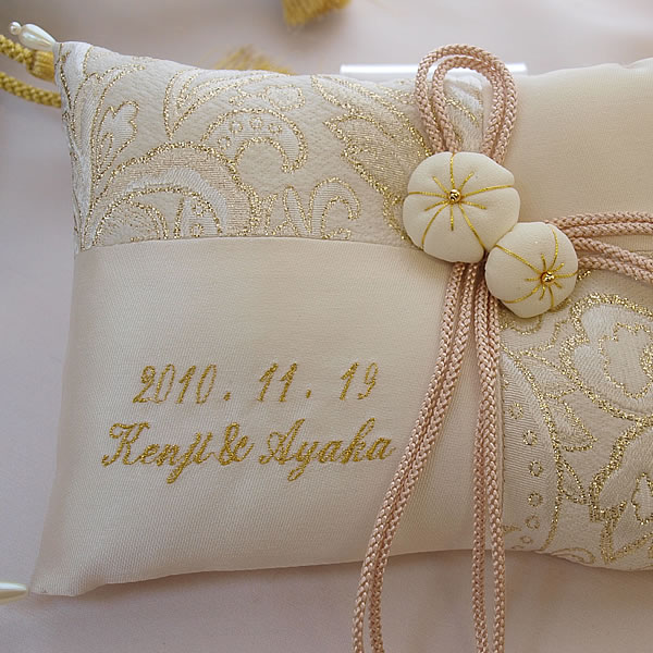 ゴールドの着物地風の素材が印象的な和風のリングピローです。